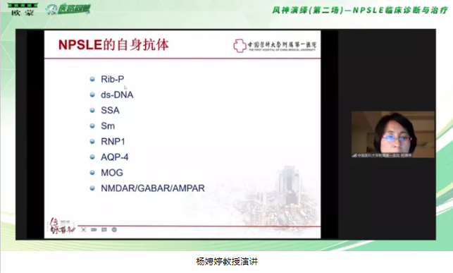 隨后由中國醫(yī)科大學附屬第一醫(yī)院風濕免疫科主任楊娉婷教授來跟我們分享《如何理解狼瘡腦病》。楊娉婷教授從科研的角度對NPSLE的發(fā)病機制進行了詳細解讀,楊教授從四個方面進行了解讀:認為神經(jīng)炎癥和腦缺血是狼瘡腦病在病理上主要的機制,以及腦屏障通透性的改變,外界的免疫異常就到了腦,可能會導致了狼瘡腦病。另外膠質(zhì)細胞也是神經(jīng)炎癥中的關鍵因素。除此之外腦本身存在異常的背景也會使得有些人容易導致狼瘡腦病。并且楊教授認為對于狼瘡腦病我們未來還有很多工作需要做。干擾素的拮抗劑、神經(jīng)炎癥介質(zhì)的拮抗劑、以及免疫細胞活化的抑制劑和補體的單抗都是未來的治療靶點。