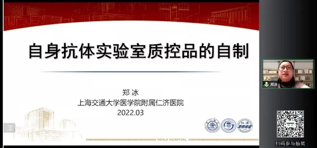 隨后,由鄭冰教授跟我們分享《自身抗體實(shí)驗(yàn)室質(zhì)控品的自制》。首先,鄭冰教授指出質(zhì)控品是檢驗(yàn)科實(shí)驗(yàn)室保證檢測(cè)質(zhì)量的重要環(huán)節(jié)和手段。自制質(zhì)控品可用于室內(nèi)質(zhì)量控制,其聯(lián)合商品化質(zhì)控品可滿足臨床實(shí)驗(yàn)室室內(nèi)質(zhì)量控制要求,避免和彌補(bǔ)全部使用商品化質(zhì)控品成本高、質(zhì)控項(xiàng)目不全面等缺點(diǎn),實(shí)現(xiàn)檢驗(yàn)科節(jié)約成本和提高檢驗(yàn)質(zhì)量的要求。接著介紹了自制質(zhì)控品可參照ISO指南80、體系文件CNAS-GL005,并列舉了兩個(gè)指南中自制質(zhì)控品的流程及方案。最后,鄭教授用實(shí)際案例講述了質(zhì)控品的評(píng)估和使用,希望通過今天的介紹可以讓老師了解質(zhì)控品的自制并應(yīng)用在自己科室。