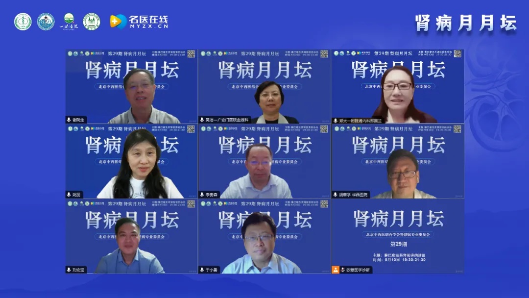 謝教授簡單介紹了“腎病月月壇”的歷史,“腎病月月壇”是在2022年5月新冠疫情防控期間開始的線上學(xué)術(shù)交流活動,每個月第3周的周二晚上19:30-21:30開展,其形式是講座與討論相結(jié)合;每期一個主題,已完成的主題包含膜性腎病及其并發(fā)癥、風(fēng)濕性疾病腎損害、遺傳性腎病的中西醫(yī)結(jié)合診治等。