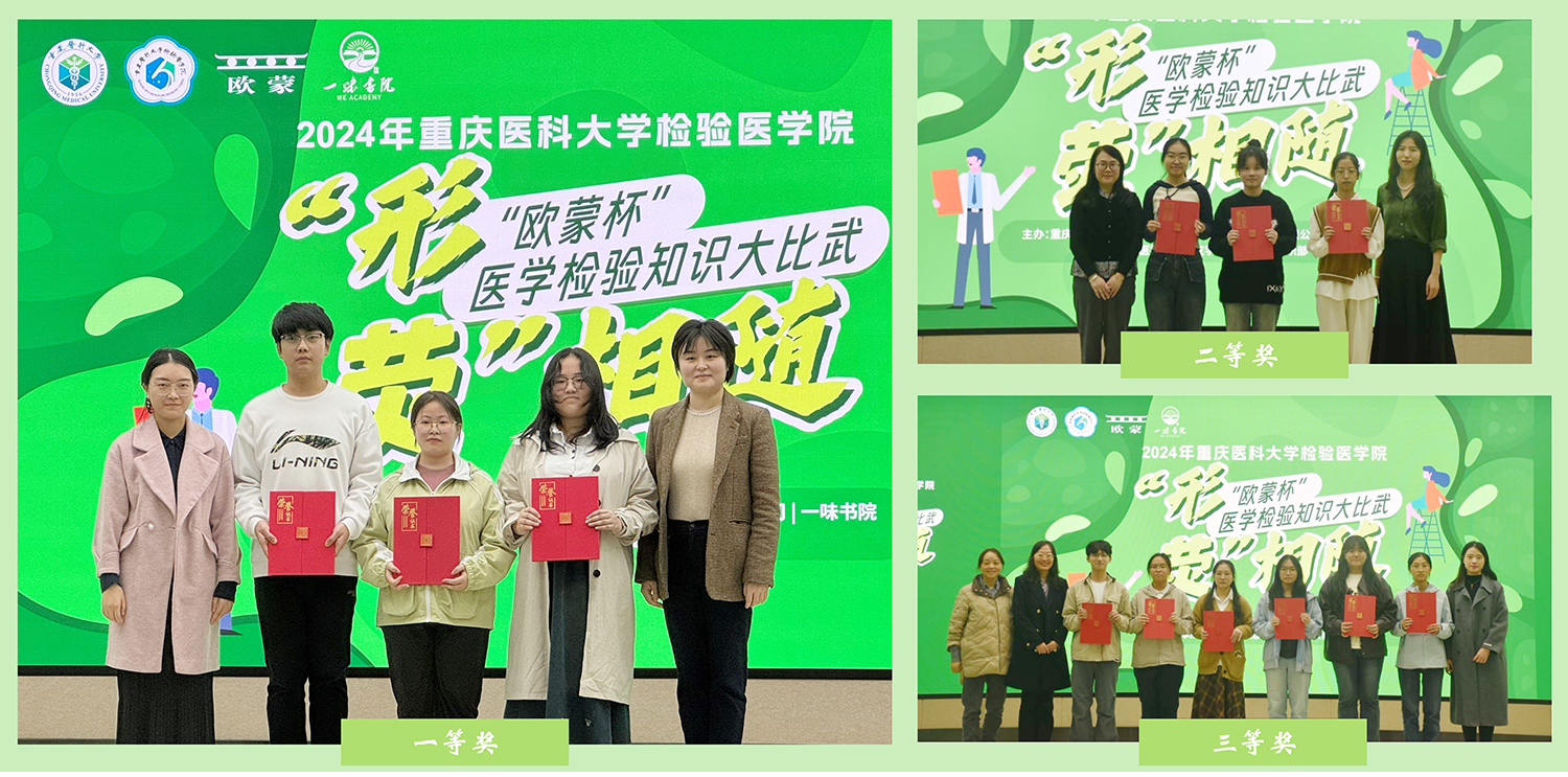 11月17日,由重慶醫科大學檢驗醫學院、歐蒙醫學診斷(中國)有限公司、一味書院聯合主辦的“歐蒙杯”醫學檢驗知識大比武活動在重慶醫科大學縉云校區成功舉辦。重慶醫科大學檢驗醫學院黨委副書記胡小蕾教授,學生工作辦公室主任詹阿蘭老師,實驗診斷學教研室唐敏教授、歐俐蘋教授,學院團總支書記李曉涵老師,輔導員閻鏡宇老師以及歐蒙嘉賓出席了本次活動。