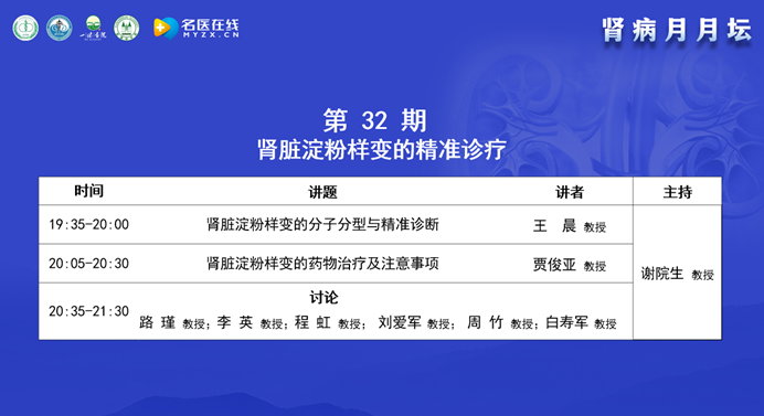 今天的主題是腎臟淀粉樣變的精準診療,腎臟淀粉樣變在腎科很常見,但在治療時經常請血液科專家會診,今天很榮幸既邀請到了腎臟病專家和血液病專家,還有臨床專家和病理專家,都是臨床一線非常有經驗和心得的專家,大家一起進行學術交流與討論。